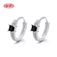 Accesorios HD al por mayor joyas de moda de alta calidad zircon negro huggie pendientes de plata esterlina