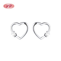 Pendientes de botón con forma de corazón de plata de ley 925 con circonita cúbica para mujer, joyería elegante al por mayor