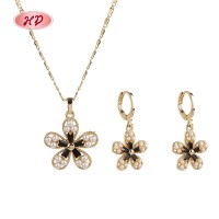 Conjunto de joyería floral moderno bañado en oro de 18 quilates | Joyería de moda al por mayor de Hengdian