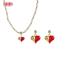 Conjunto de joyería de moda con corazón y perla chapado en oro de 18 quilates | Joyería Hengdian Trendy Wholesale