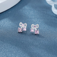 Pendientes de plata 925 con lazo de circonitas AAA rosas para mujer. Joyería al por mayor.